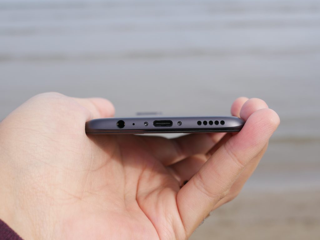 Il retro invece è stato al centro di molte polemiche, data la presunta somiglianza con il retro di iPhone 7 Plus. In effetti in foto l’effetto è molto simile ma il touch and feel del device è differente e inoltre va segnalato, a favore di Oneplus, che gli spazi sono molto meglio ottimizzati (dimensioni di 154,2 x 74,1 x 7,25 mm per un peso di 153 grammi) e grazie alla Horizon Line (una sorta di linea che contorna e “spezza” i bordi laterali dello smartphone) l’ergonomia è davvero ottima e il telefono non scivola facilmente.